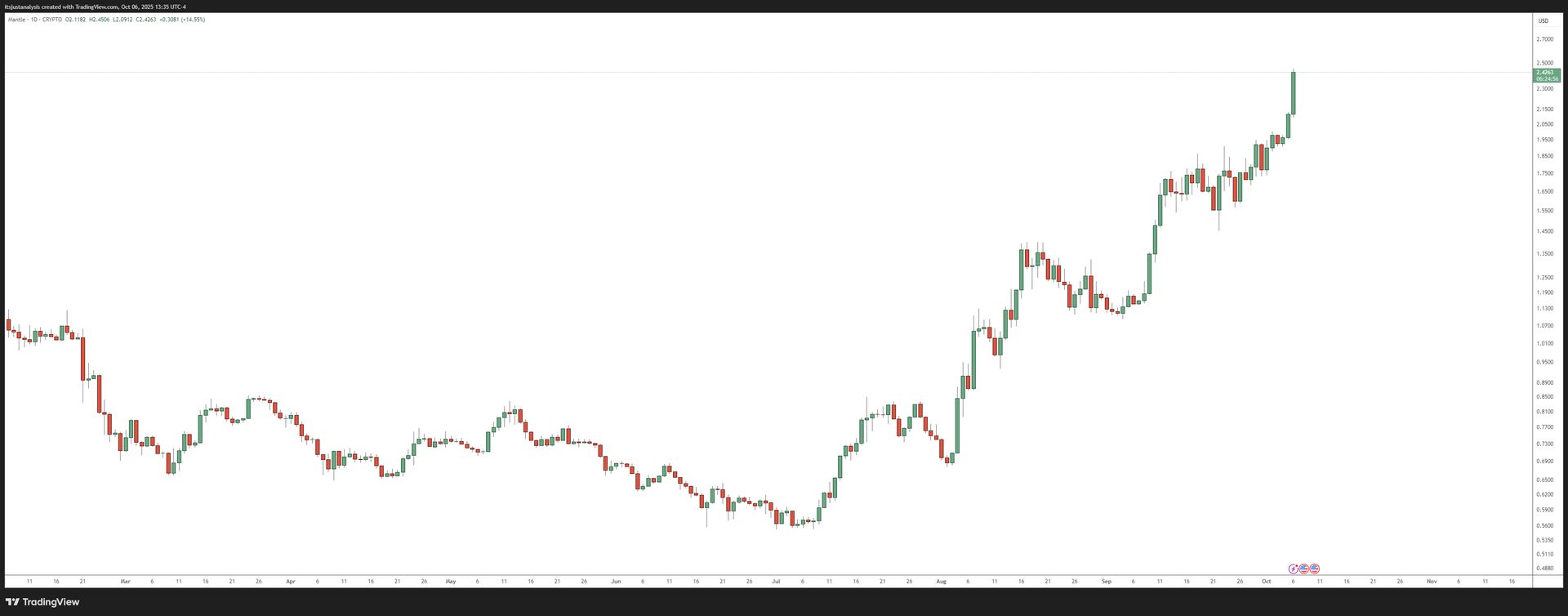 New all-time high hit today, and nearing the critical $2.50 value area. Itās up +338% from its July 8, 2025 lows. šØ