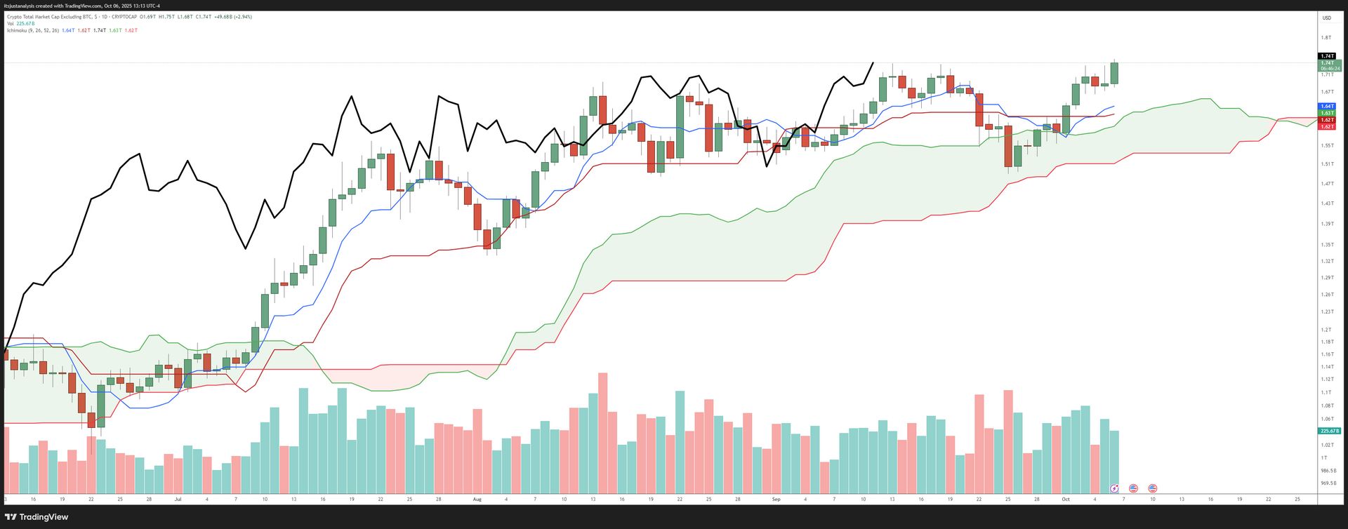 But this is crypto and when expansion moves happen, they can go insane-o mode pretty quick and last for a while. Oh ya, the Altcoin Market Cap hit a new all-time high today: $1.75T!