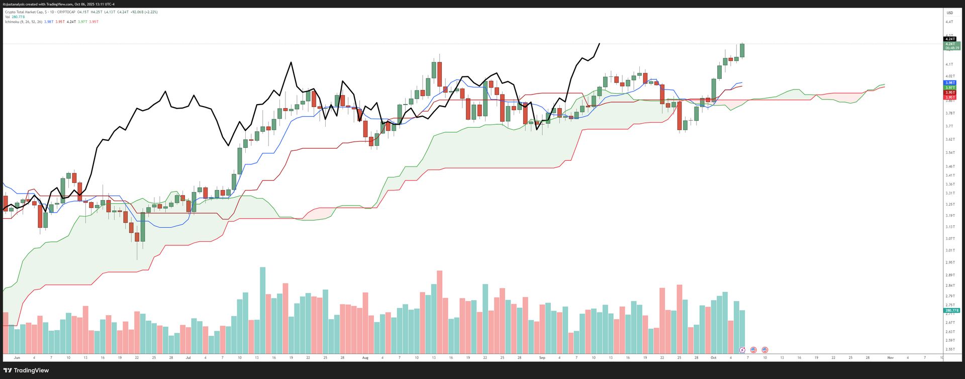 The Total Crypto Market Cap hit a new all-time high today: $4.25T!