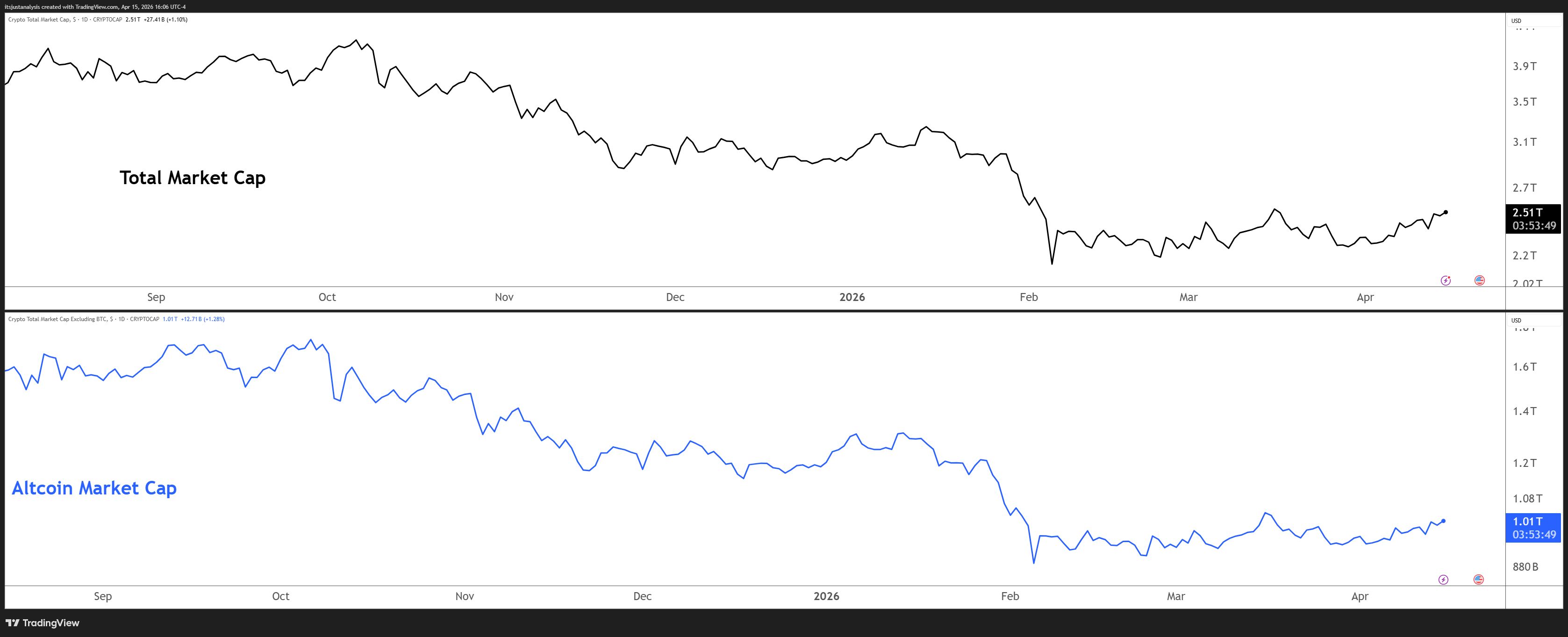 Before we dive in, here’s today’s crypto crypto’s total market and altcoin market cap charts:
