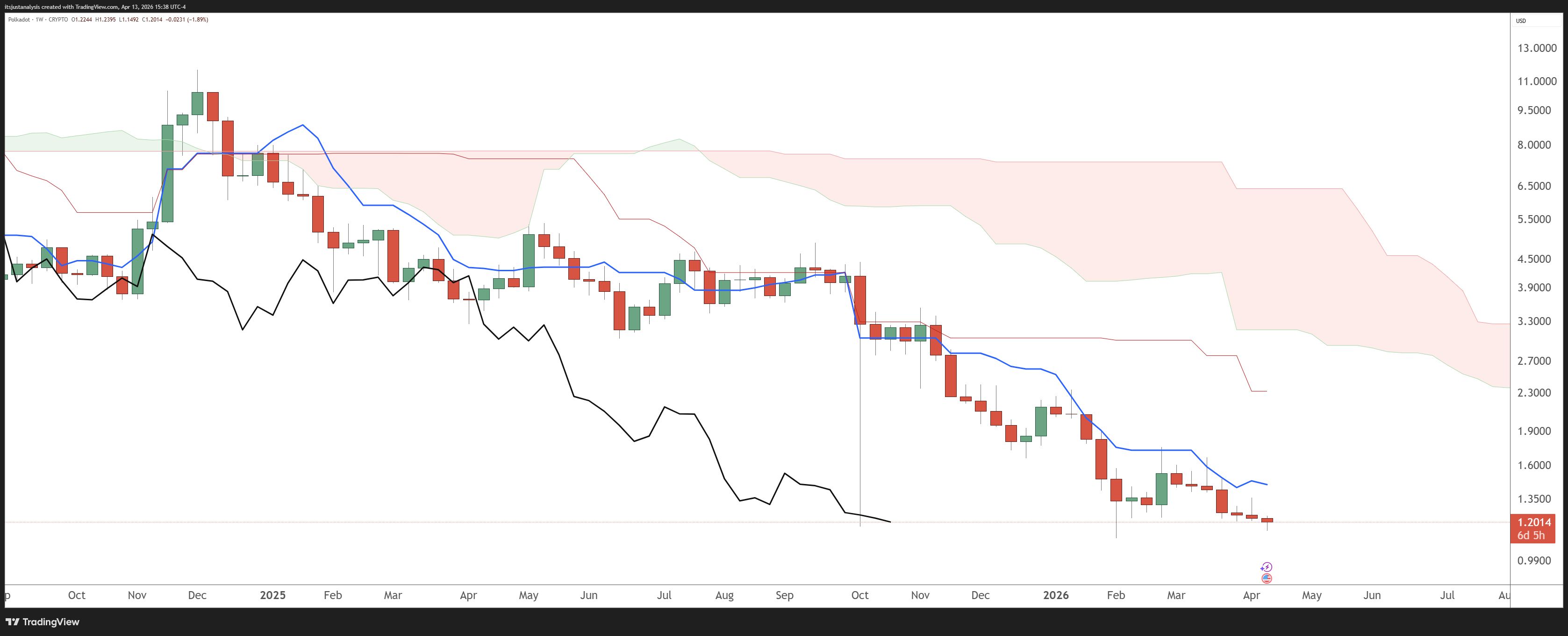 At some point sellers need to have a heart and just look at the sad state this meat sack of a crypto Polkadot is in. Just look at the weekly chart below: