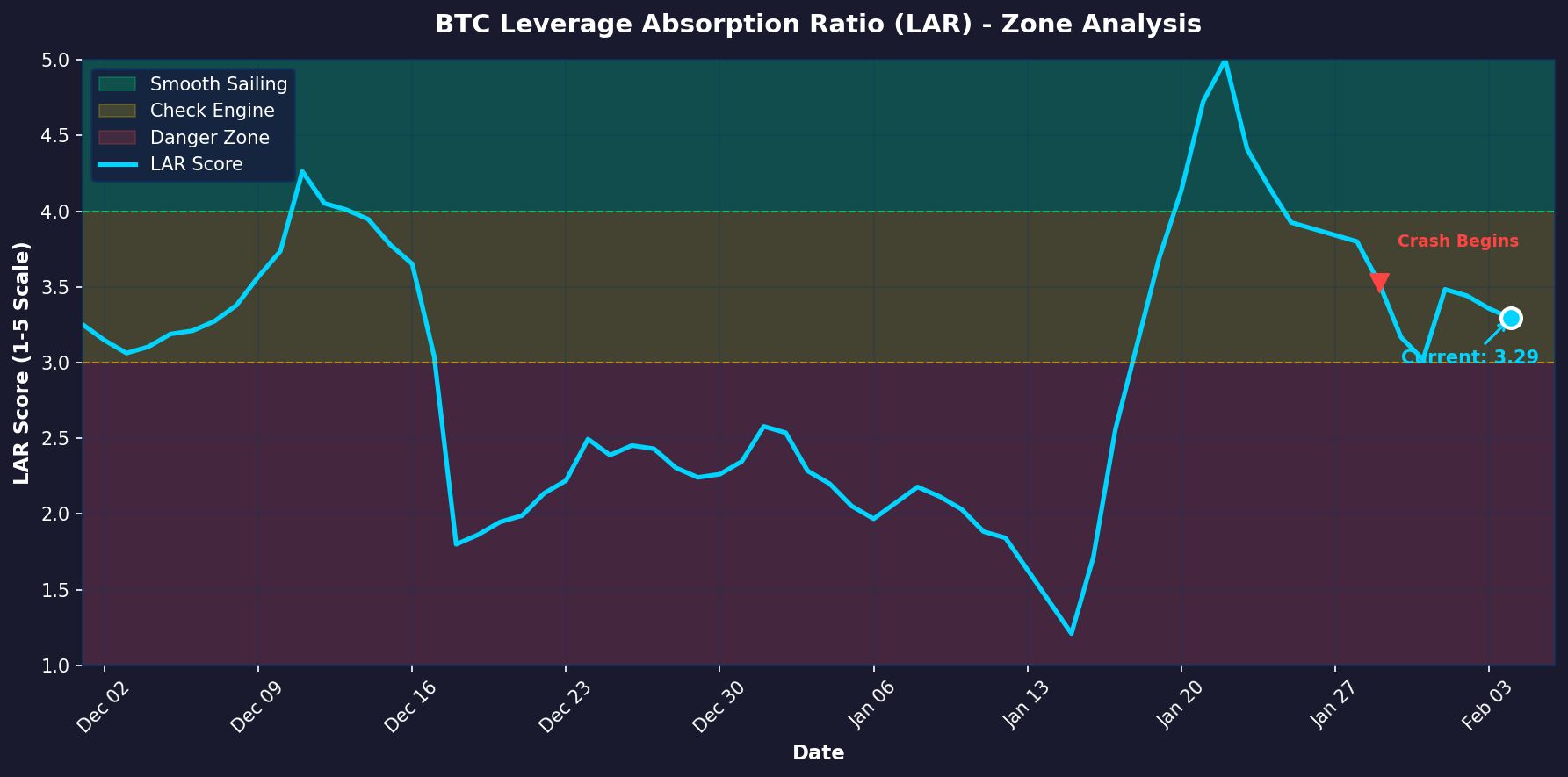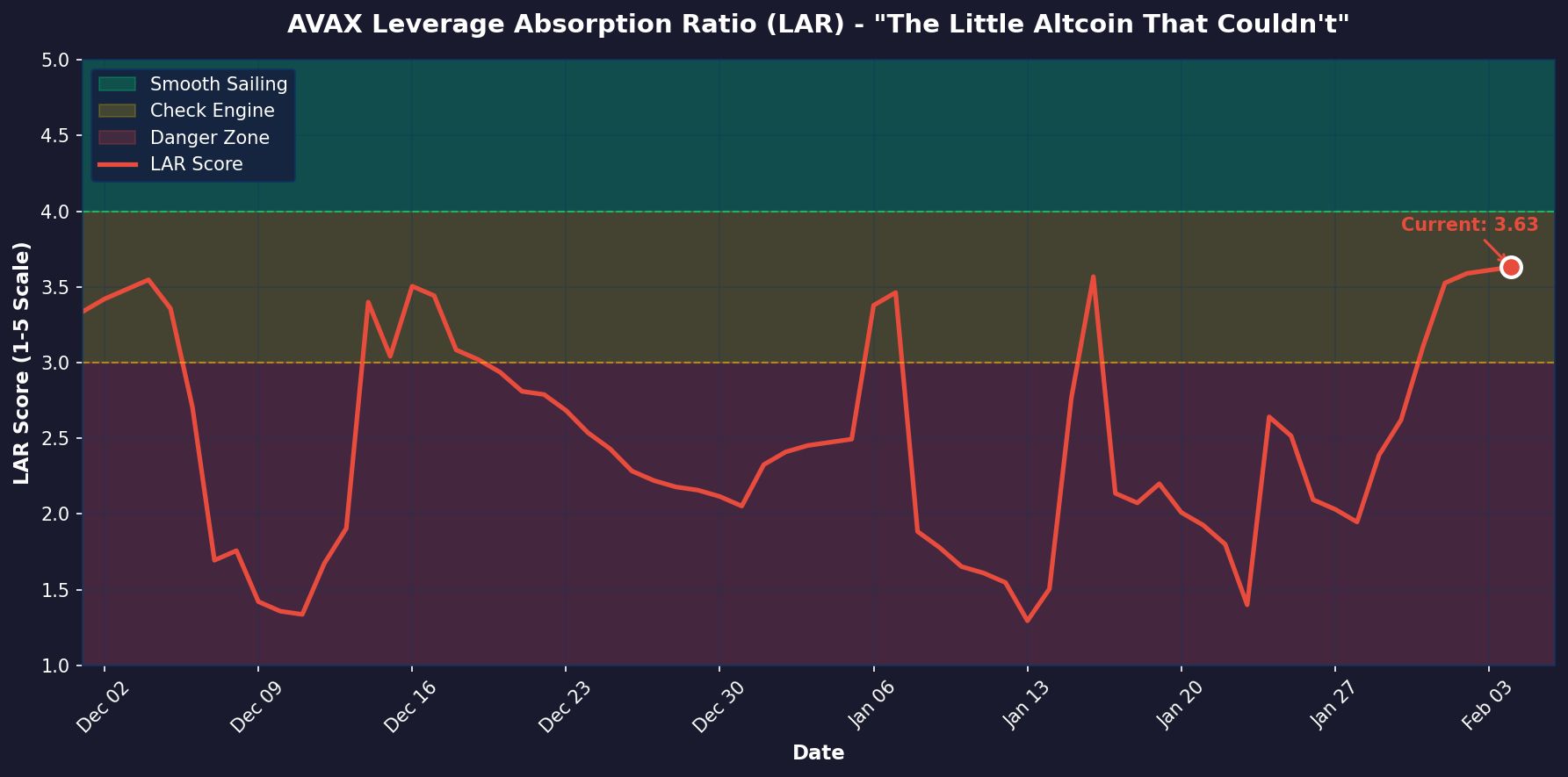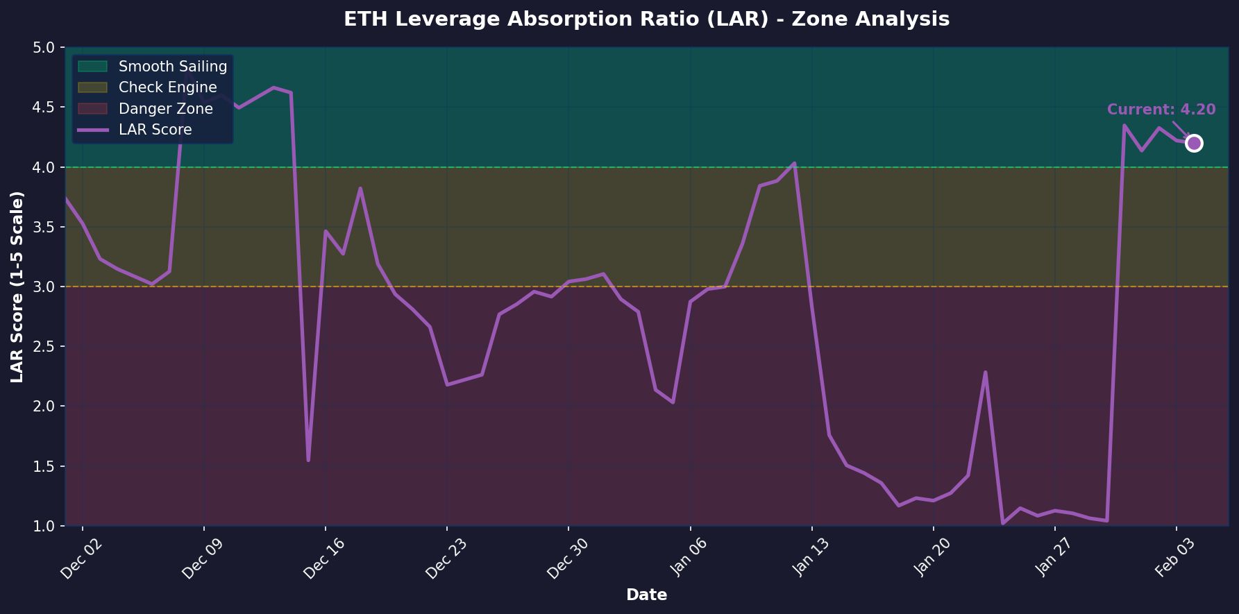 Open interest tells you leverage is building. It doesn't tell you if that leverage is healthy or a bomb. That’s why I developed the Leverage Absorption Ratio (LAR). 🧠