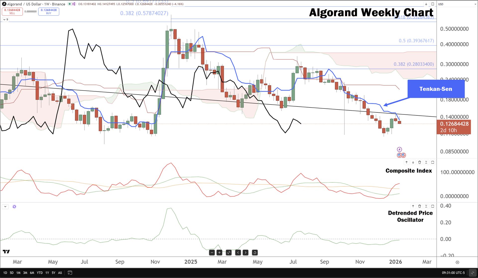 Whelp, $ALGO ( ā² 1.81% ) is just not pretty. Last weekās candlestick and this weekās candlestick both tried their best to reach up to that trend line and the Tenkan-Sen, hoping one or both would be ready for a good time and both times the two of them got slapped and kicked in the nuts.