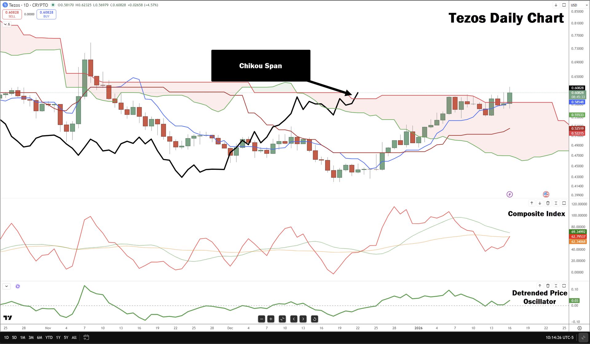 And if Tezos closes the day above $0.5933, that would put the Chikou Span above the Cloud, fulfilling the most conservative and sought after bullish entry condition within the Ichimoku system: the Ideal Bullish Ichimoku Breakout.