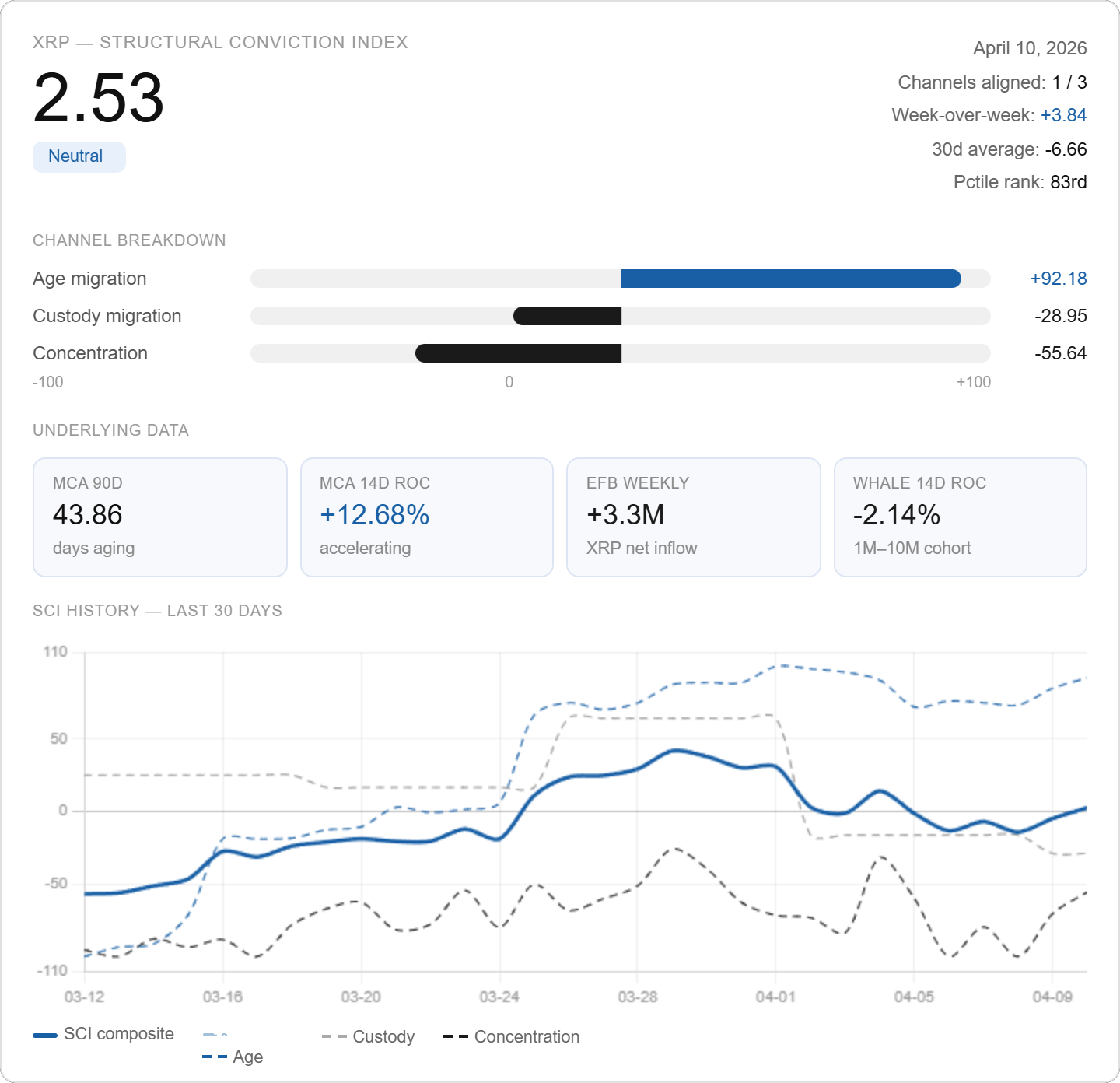 The SCI is a behavioral framework. It tells you what holders are doing with their coins. Price is someone else's problem.