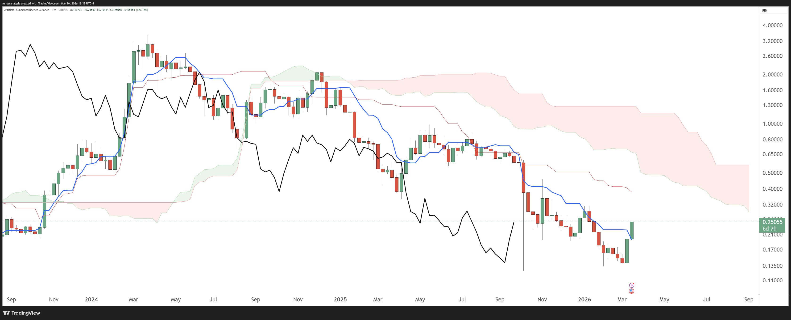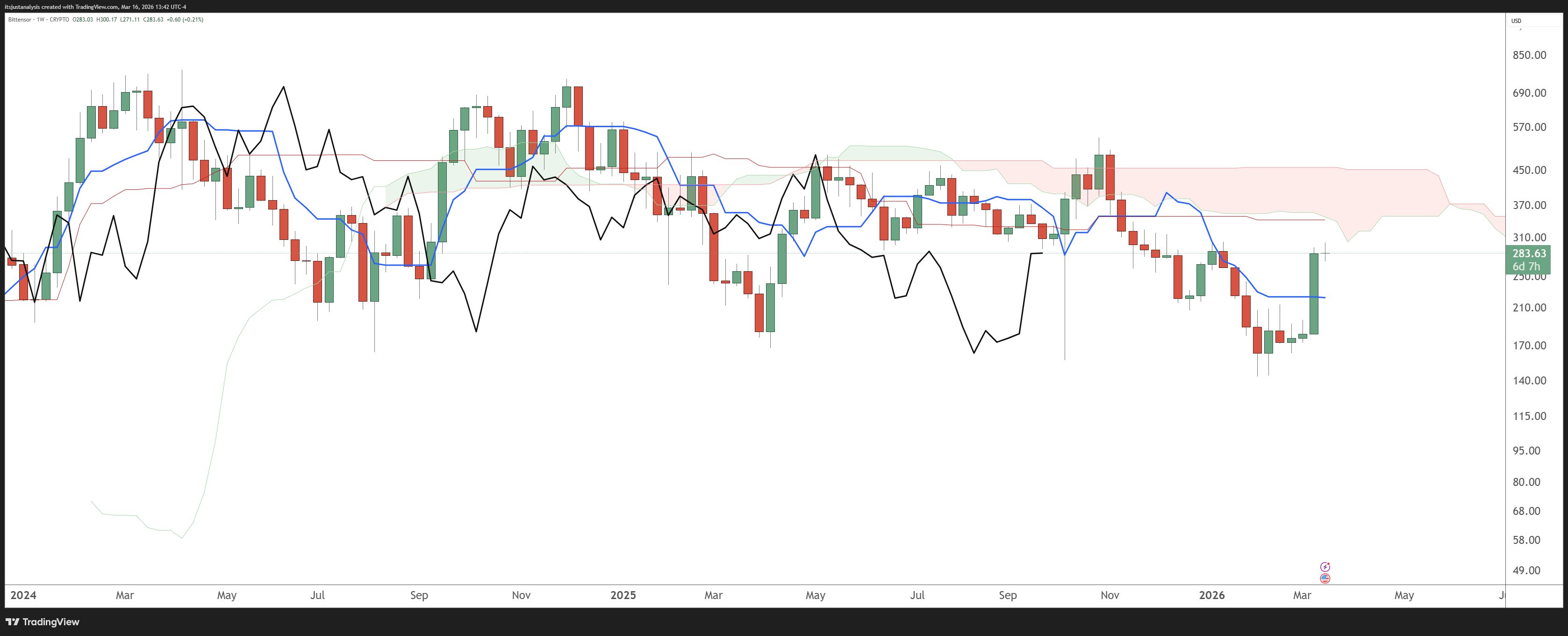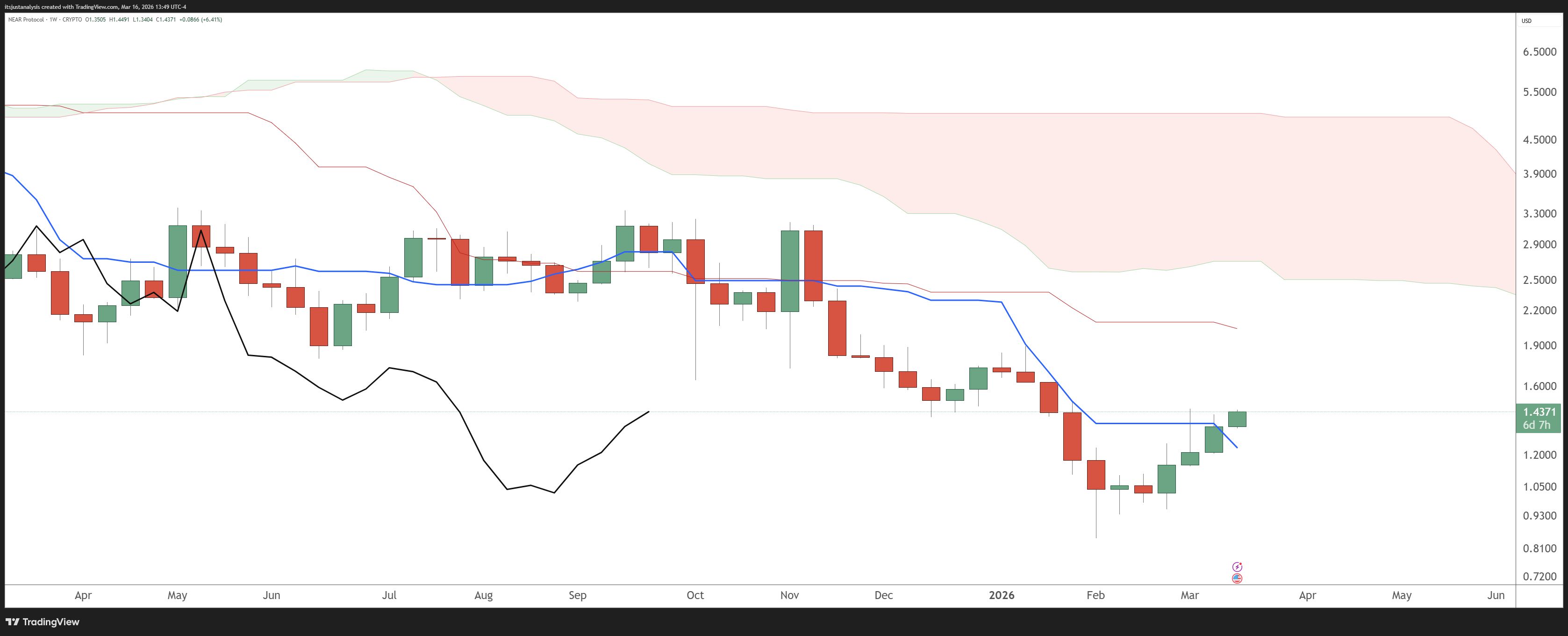 $NEAR ( ▲ 9.13% ) maybe doesn’t seem like its in the AI category of crypto, but it definitely is. And while it didn’t have the big boom that FET and TAO did, it’s had three straight weeks of closing in the green and up +60% from the February 2026 lows.