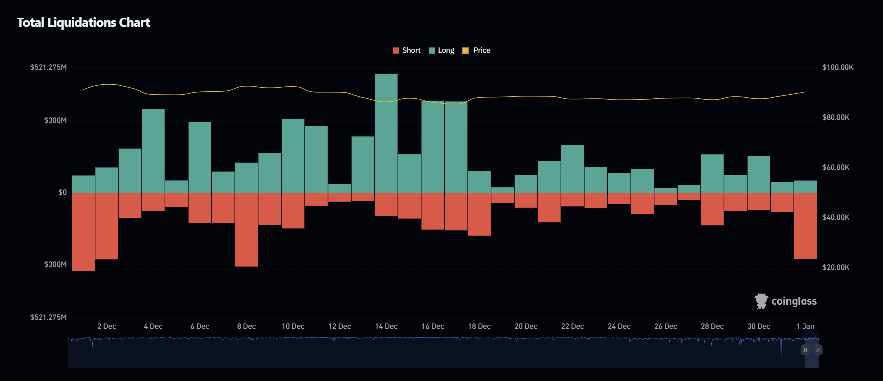 December 2 - heavy short liquidation day near ~$300M as BTC pushes higher early in the month and squeezes early bears.