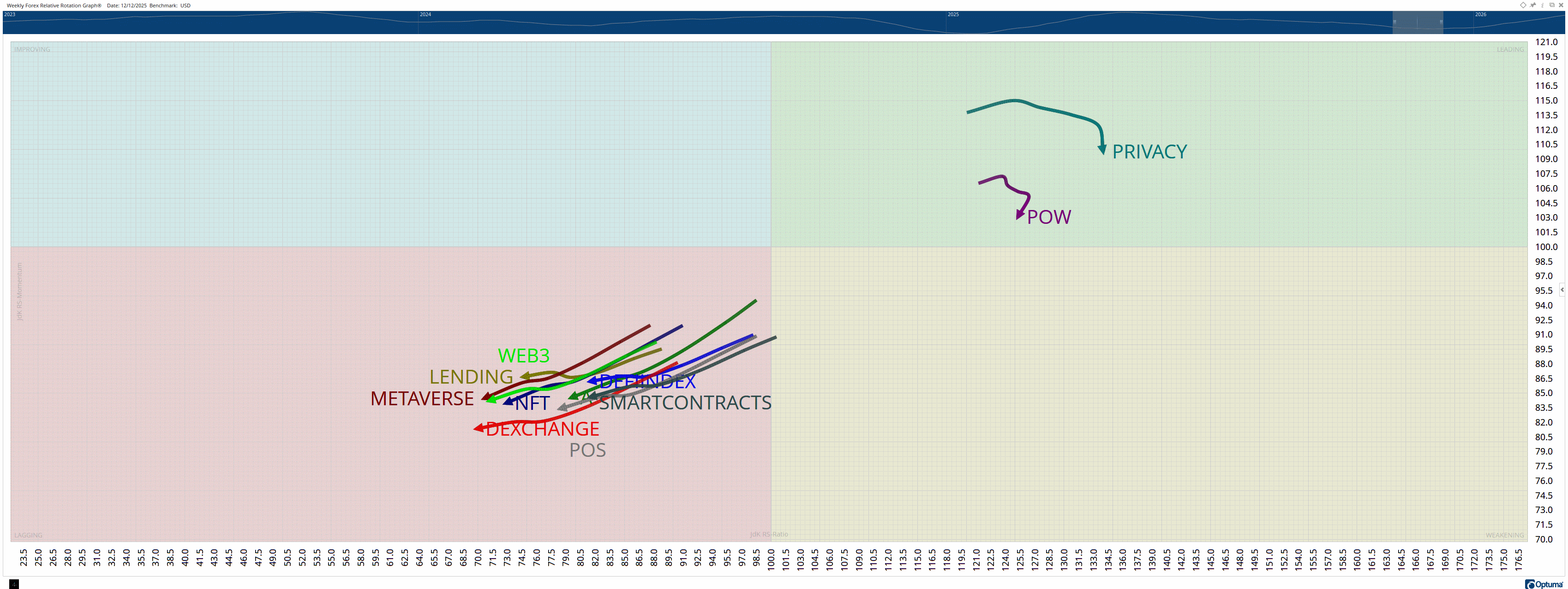 The GIF below shows the past 13 weeks of movement on the RRG.