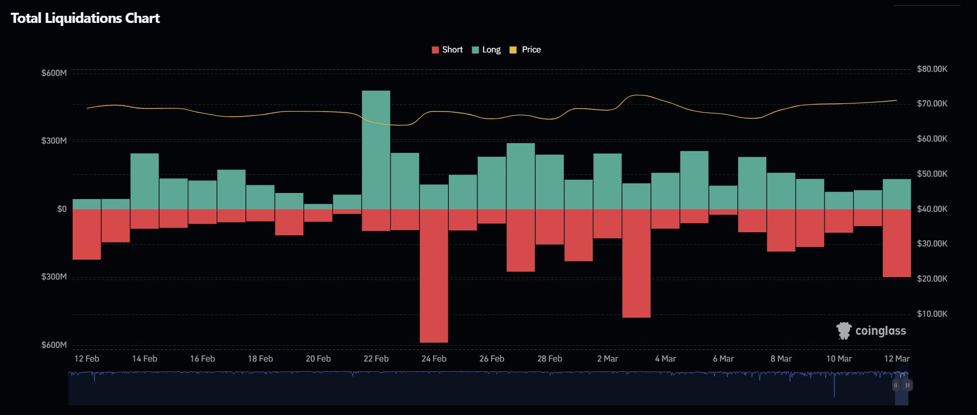 Mar 12 - End-of-window short liquidation spike ($300M) as price lifts again.