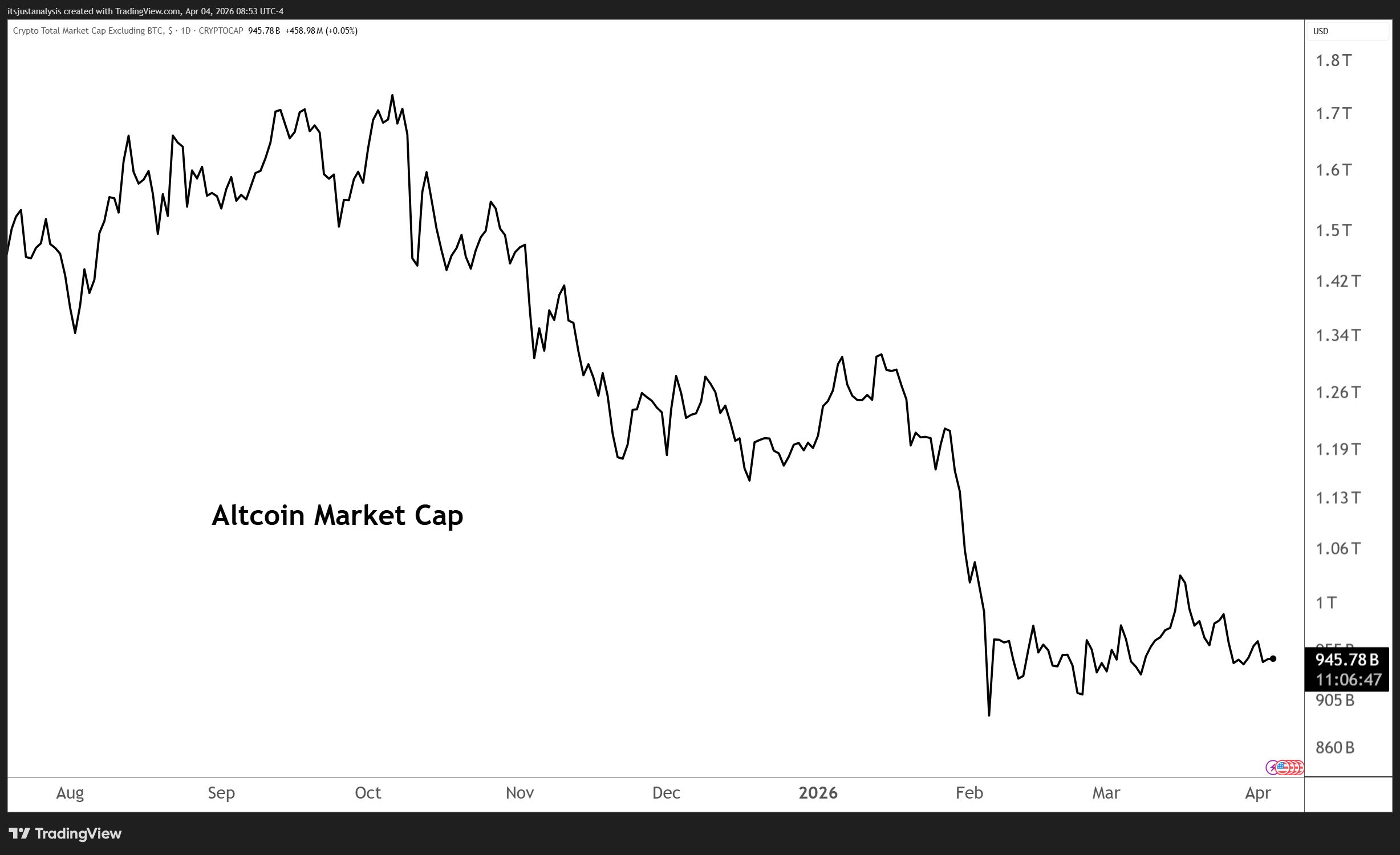 Total and Altcoin caps, stamped with YTD moves and the gap to ATH.