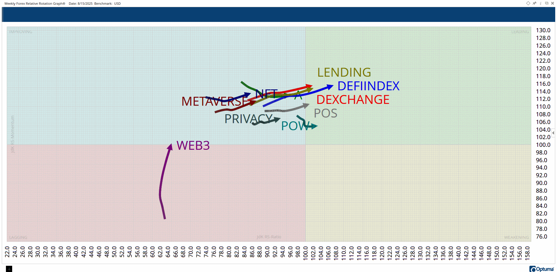 The GIF below shows the past 13 weeks of movement on the RRG.