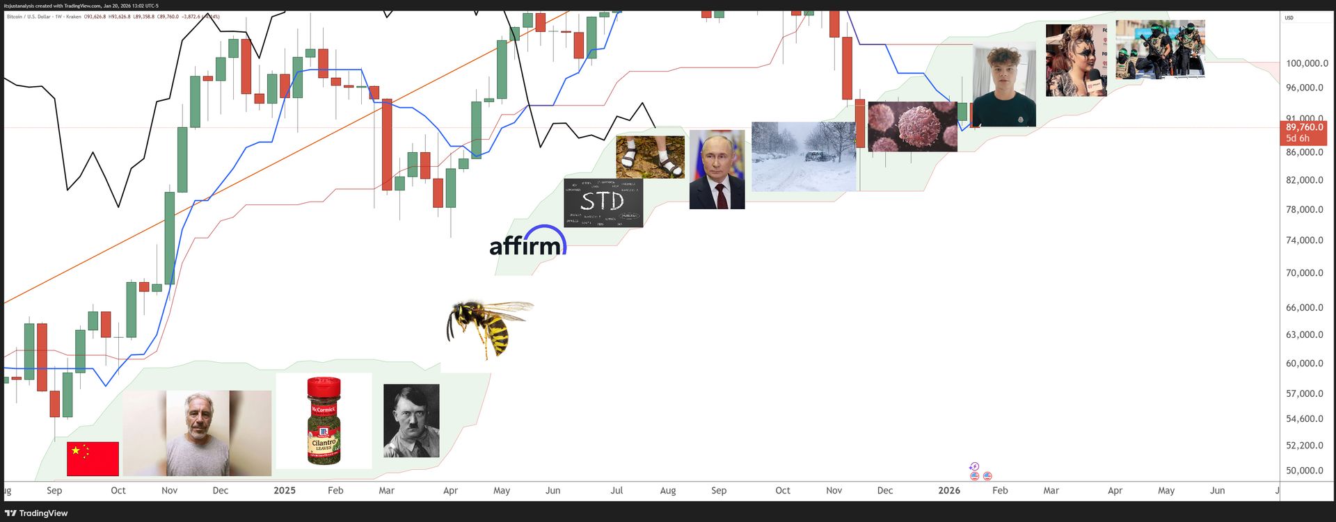 If you were in crypto at that time, then you know what I’m talking about. Lot’s of false breakouts, plenty of fake sell offs, and a general vibe of ‘meh’. And that’s where we are today. Bitcoin is now in it’s eleventh consecutive week of being exposed to the inside of this nightmare known as the Cloud. 🧠