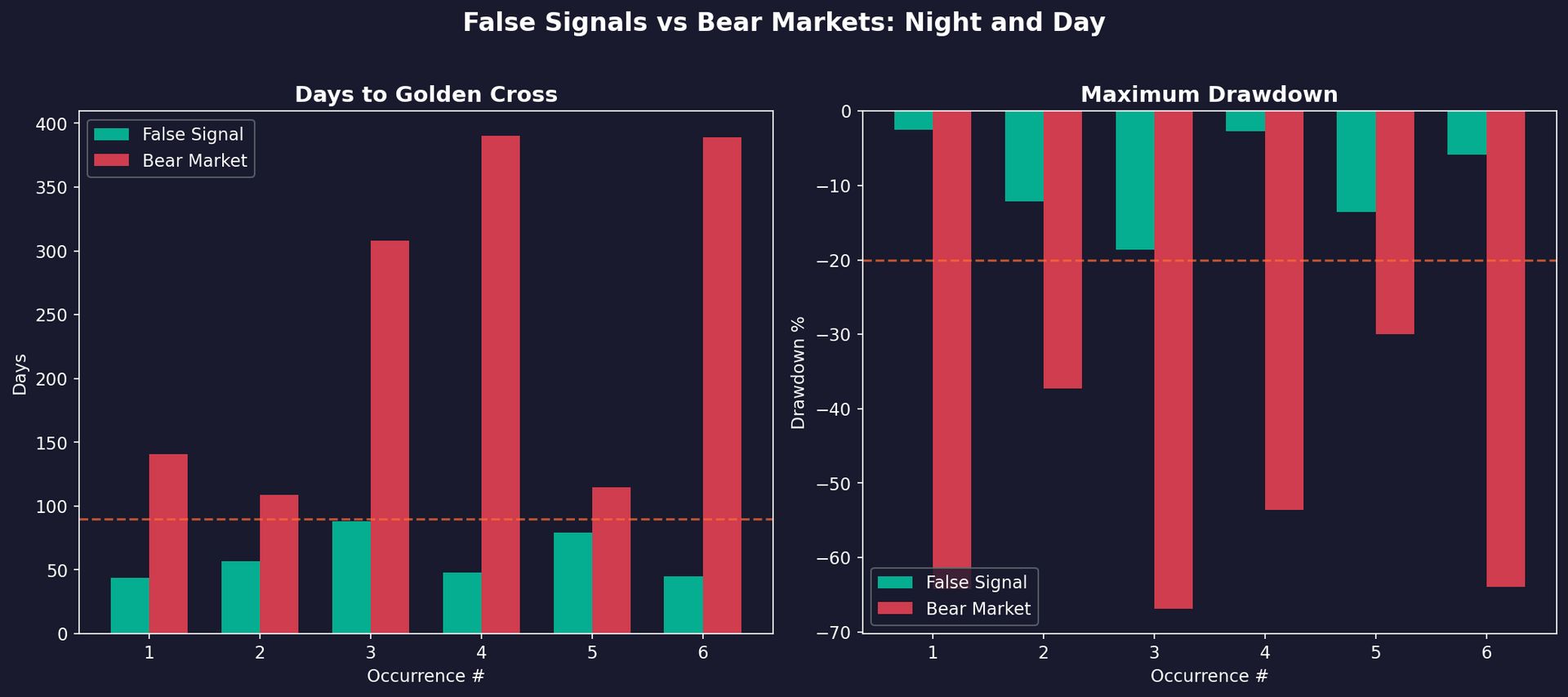 The rule: If price is still below the 200 SMA at day 90 - it's a bear market, well, probably. If price reclaims the 200 SMA before day 90 - it's a false signal.
