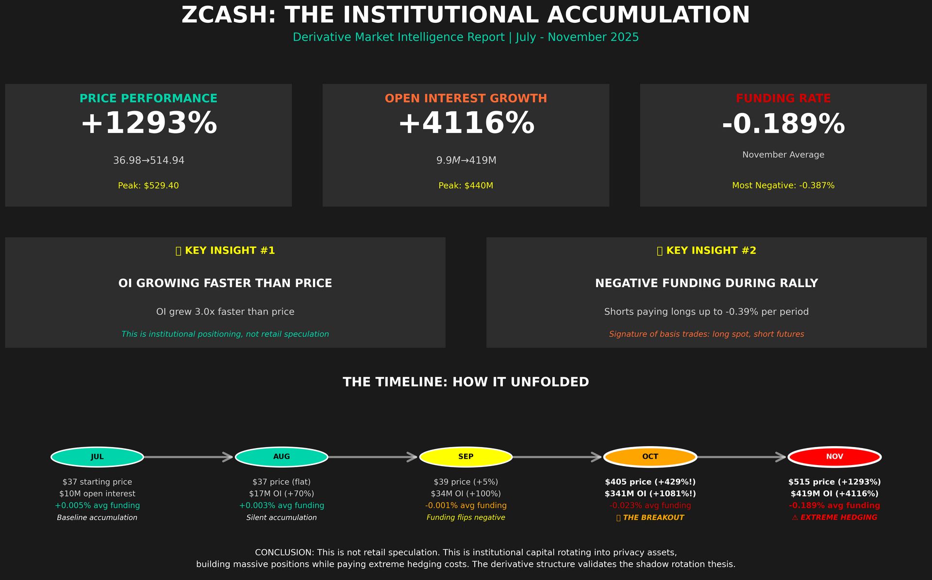 Zcash just put up a 1,293% return from July through early November 2025, climbing from $37 to $515. But that's not the interesting part. 🤔